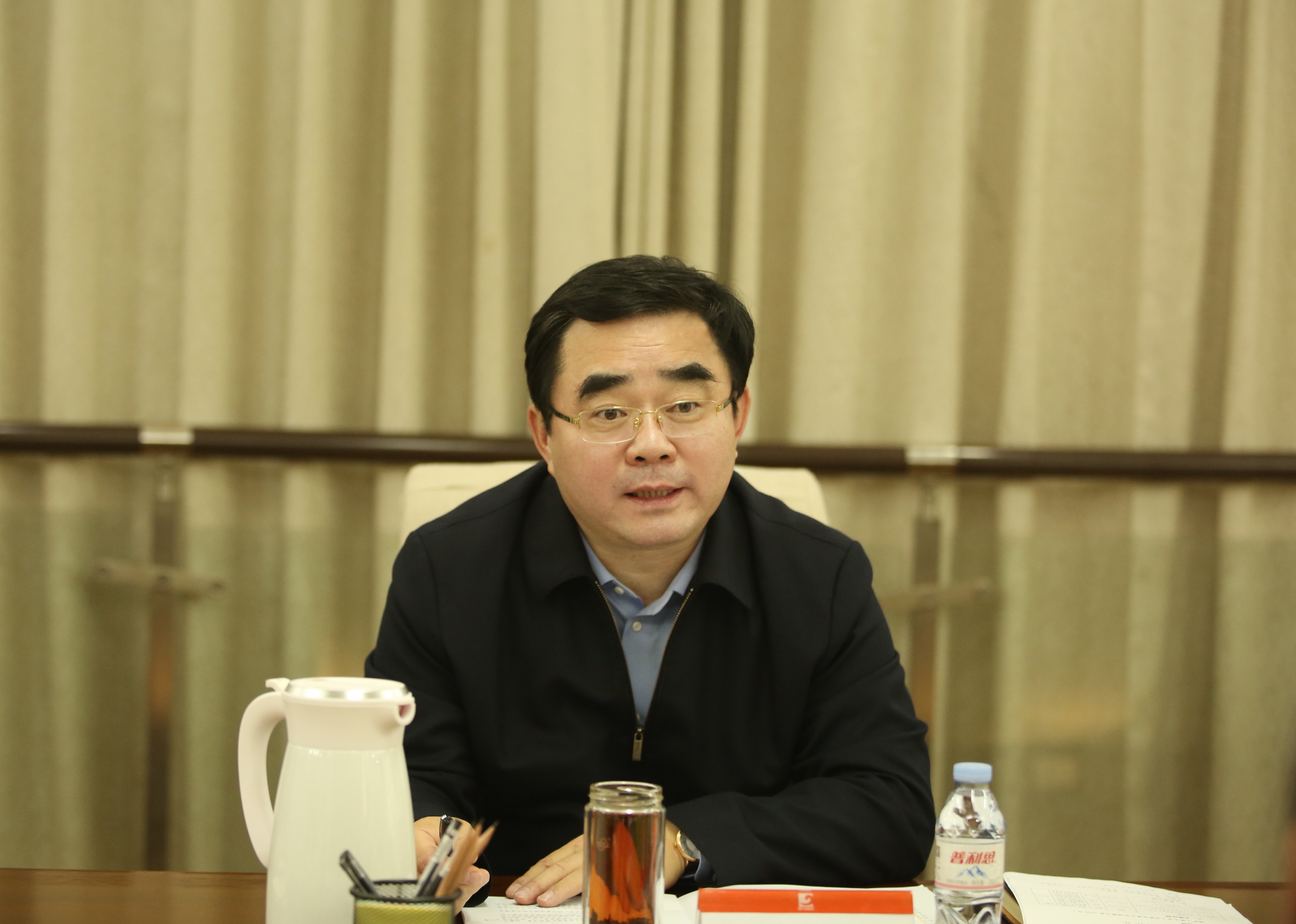 13月15日十一点,陕西期货集团网站党支部书纪、执行总经理满慎刚到地煤矿工程公司的调研会。